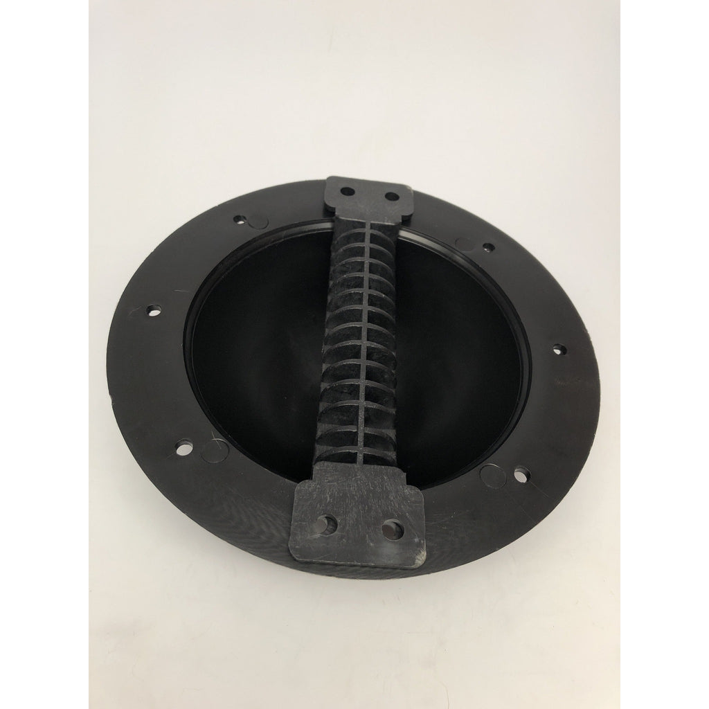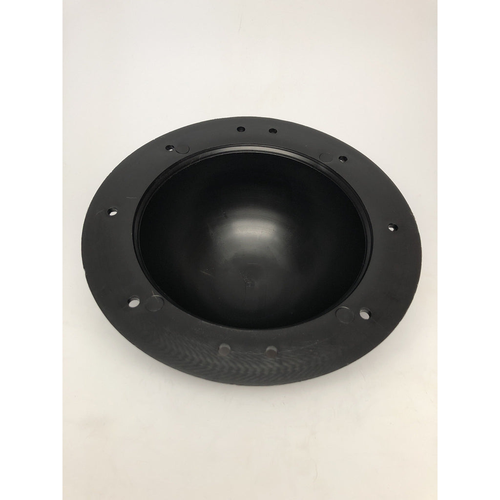 Our shield bosses are a practical, lightweight, attractive and consistent alternative to handmade bosses which are often less than perfect. The hemispherical width is a generous 14.4 cm. They feature a black textured surface made to resemble hammered, blackened iron. They are nice and deep for safety and to fit a variety of hand sizes. They are made of black high durometer santoprene, nearly indestructible. Use your own handle or use our made-to-fit perfectly black handle.