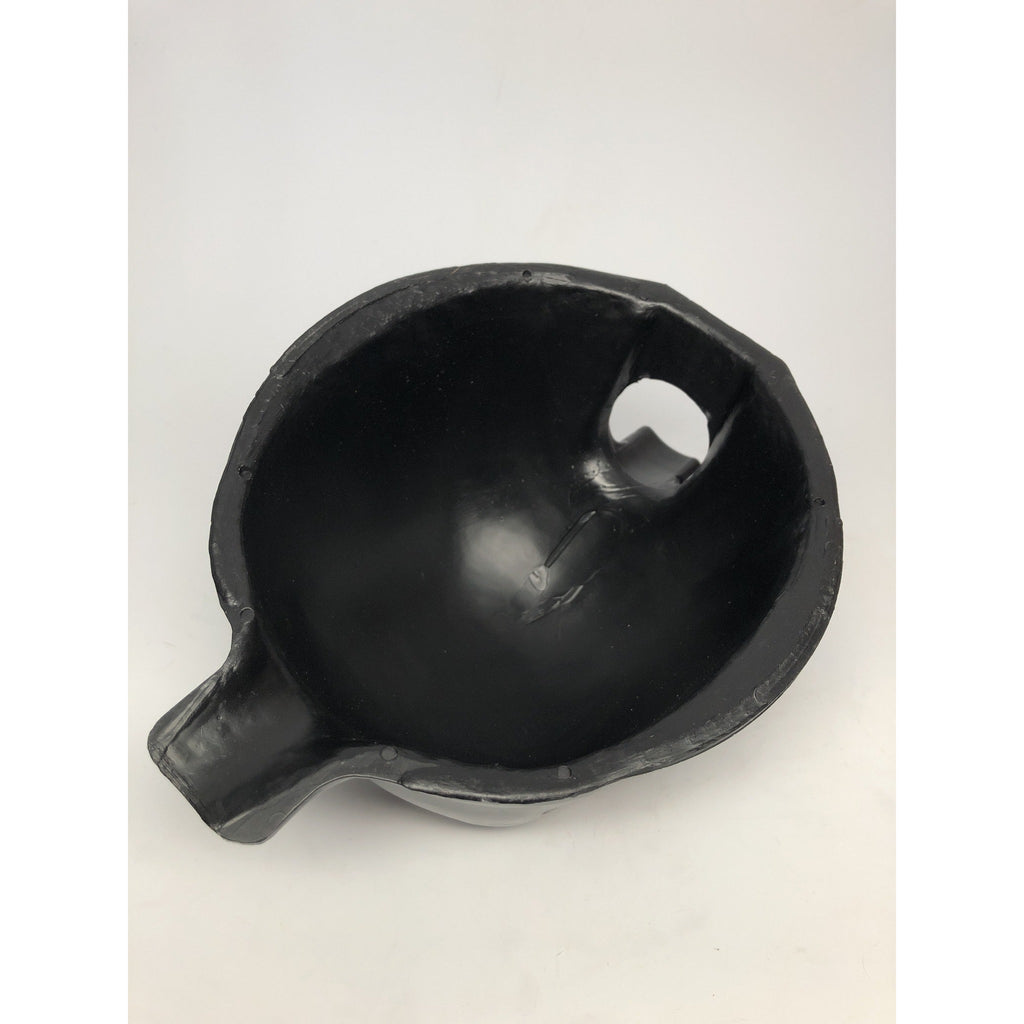 In appearance, they're an unobtrusive dull black, and on close inspection look like machined UHMW (Ultra High Molecular Weight polyethylene). The overall shape is reminiscent of a Schiavona Hilt, though of course they're one-piece with no piercings or openwork. Three keels, a reinforced throat plate, and a flanged rim add greatly to protection without sacrificing light weight, and thick tabs fore and aft allow attachment to the weapon with hose clamps or multiple wraps of strapping tape, as well as being rugged enough to allow for an unsupported screw directly through the tab into the rattan. The two-tab construction also leaves the pommel clear for attachment of a pommel weight, and coupled with the lightness of the hilt itself, allows you to fine-tune the balance of your weapon. Unlike any other non-metal cup hilt we've heard of, these are neither assembled from chunks of plastic nor made from something else; they're specifically designed and manufactured for SCA combat, with thousands of dollars and hundreds of hours invested in design, mold costs, and prototype runs. If you haven't seen one, you haven't seen anything like it; if you've never used one, you probably haven't found the last hilt type you'll ever use...